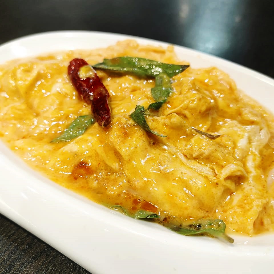 金黃色的色澤搭配些許月桂葉及辣椒點綴,讓原本秀色可餐的泰式嫩蛋更顯得美味。